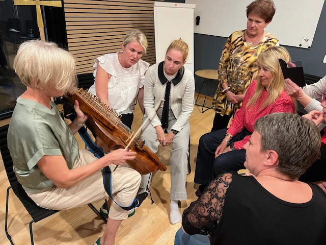 Ett gäng estniska musiklärare är nyfikna på nyckelharpan.