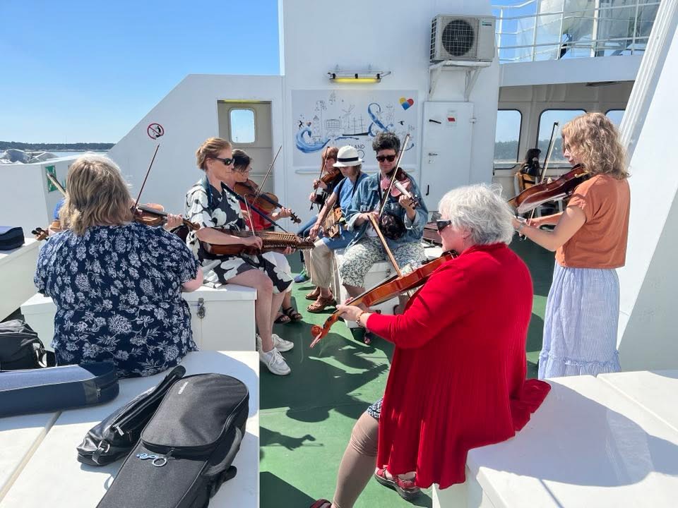 Ibland gör vi kortare eller längre resor inom och utanför Åland. På så vis sprider vi den åländska låtskatten men tar också med oss låtar från andra håll.
